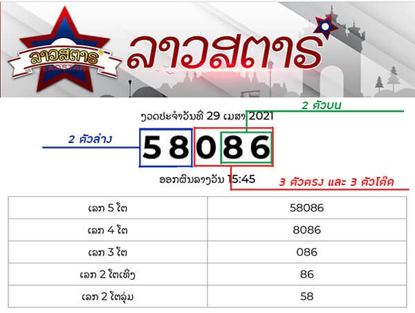 โดยสิ่งที่ต้องรู้คือ ผลรางวัลของหวยลาวสตาร์จะใช้เลขทั้งหมด 5 หลัก และอ้างอิงตำแหน่งรางวัลดังนี้